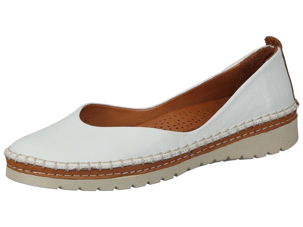 Kožené bílé baleríny jsou měkké a pohodlné. Stélka v botách je masážní a kožená. Podešev flexibilní s protiskluzovou úpravou.