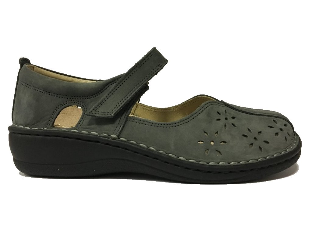 Muf 8805 kožená perforovaná balerina šíře H modro šedá