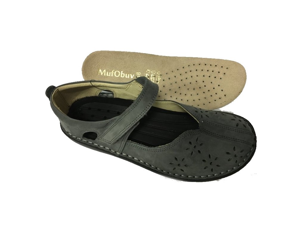 Muf 8805 kožená perforovaná balerina šíře H modro šedá