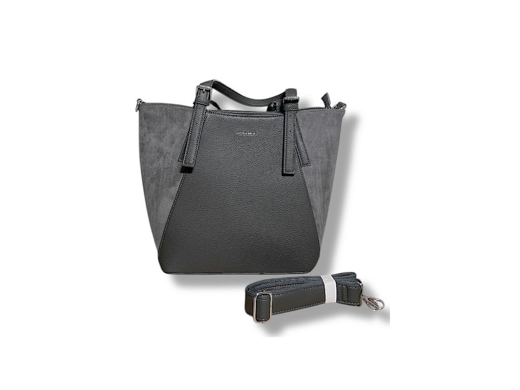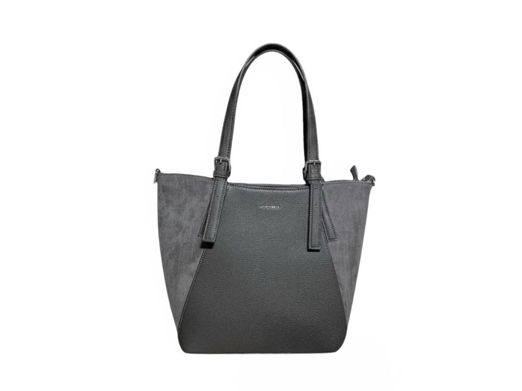 Elegantní prostorná kabelka kombinovaná v broušené a hladké eko kůži. Ideální volbou pro každodenní nošení. Kabelka má pevné dno a chrání ji 4 kovové nožičky. Celá se zavírá na zip - bezpečnost. Kabelka má praktické uspořádání vnitřních kapsiček.
