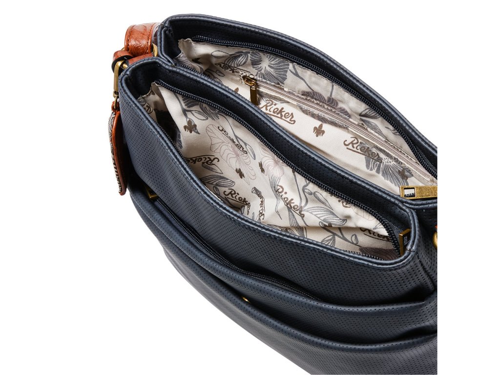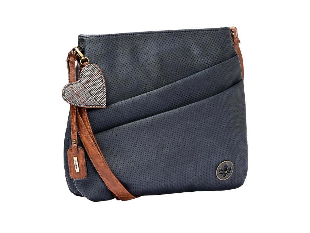 Svršek této Rieker kabelky je ozdoben povrchovou jemnou perforací a odepínatelným přívěskem ve tvaru srdce. U horního okraje jsou dva zipy, po jejichž rozepnutí se otevřou dvě hlavní oddělené kapsy, v jedné se nachází další malá zipová kapsička na jakékoliv Vaše drobnosti. Na přední straně jsou dvě menší kapsy ukryté v řasení kabelky, a taktéž na zadní straně je menší kapsička opatřená zipem. Kabelka má délkově nastavitelný popruh lemovaný jemným prošíváním. Díky jemným detailům ji sladíte s jakýmkoliv Vašim outfitem při každodenním nošení.