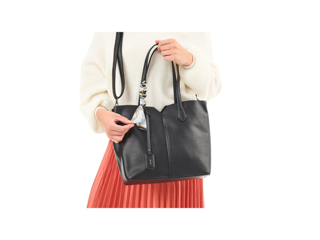 Tato kabelka RIEKER v univerzální černé barvě představuje harmonické spojení nadčasové elegance a praktičnosti. Doplňkem je textilní prvek v designovém zpracování, který zvýrazní půvab kabelky. Hlavní prostor uzavíratelný zipem nabízí dostatek místa a zároveň obsahuje menší přihrádky pro uložení drobností. Praktičnost doplňují dva kratší úchyty a odepínatelný popruh s možností nastavení délky pro pohodlné nošení přes rameno.