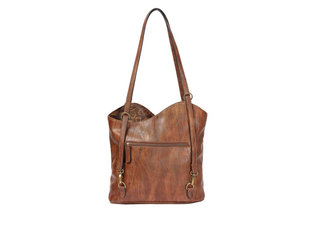 Svršek této kabelky Rieker je díky hnědému provedení a vzoru v dolním rohu poutavým a přesto decentním kouskem. Kabelka je zdobená přívěskem s logem značky a na zadní straně praktickou kapsou se zipem. U horního okraje se nachází zip, po jehož rozepnutí se otevře velká kapsa rozdělená praktickou kapsou na zip. Uvnitř kabelky se nacházejí také malé kapsičky vhodné k uložení drobností. Kabelka je vybavena dvěma delšími popruhy, díky čemu ji můžete pohodlně nosit přes rameno nebo zvolit variantu batohu.