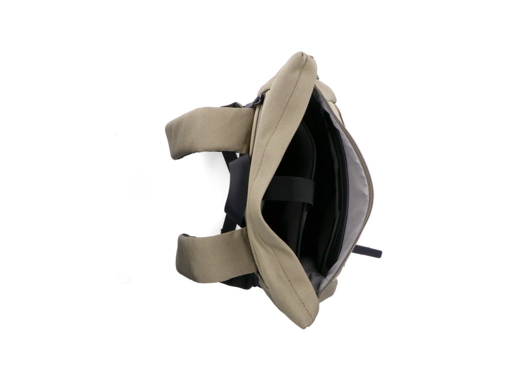 Na přední straně dvě kapsy na zip a na zadní straně jedna kapsa na zip. Uvnitř batohu polstrovaná přihrádka na menší notebook nebo tablet (šíře 24 cm), 1x zipová kapsa, 2x otevřená kapsička na mobil, klíče apod.