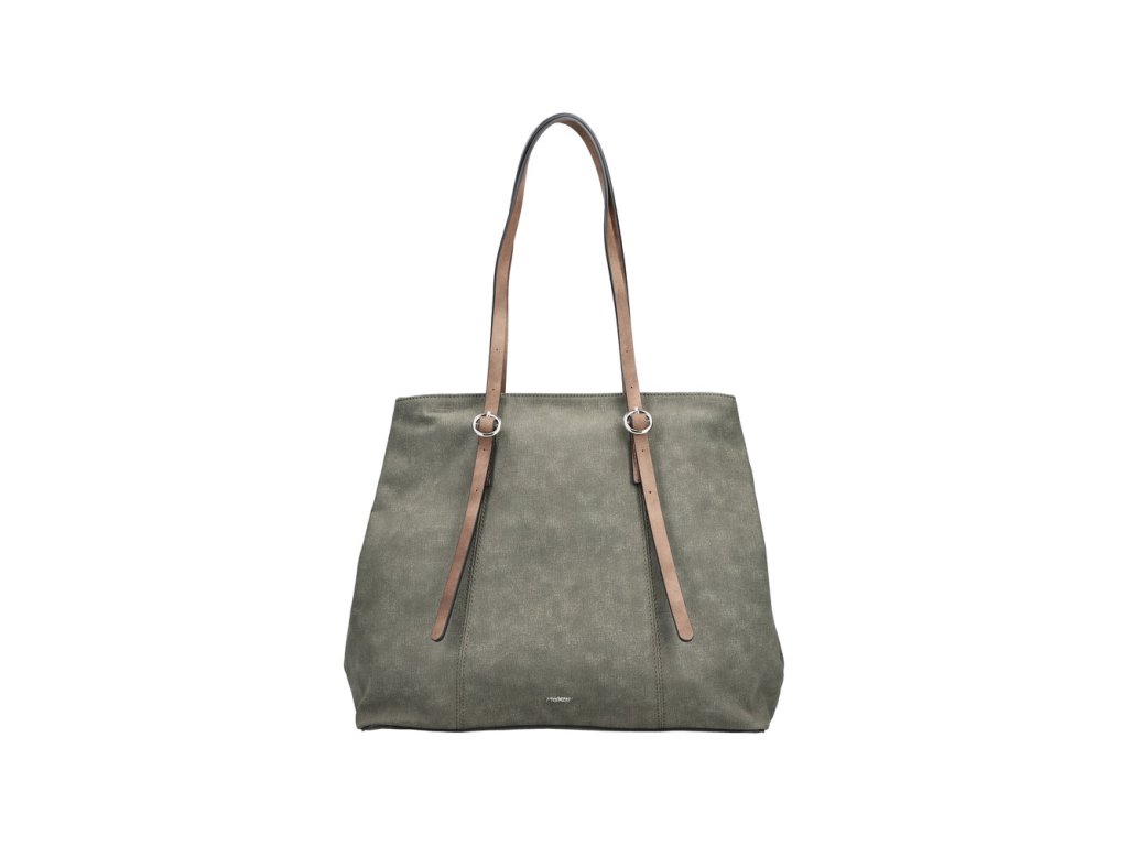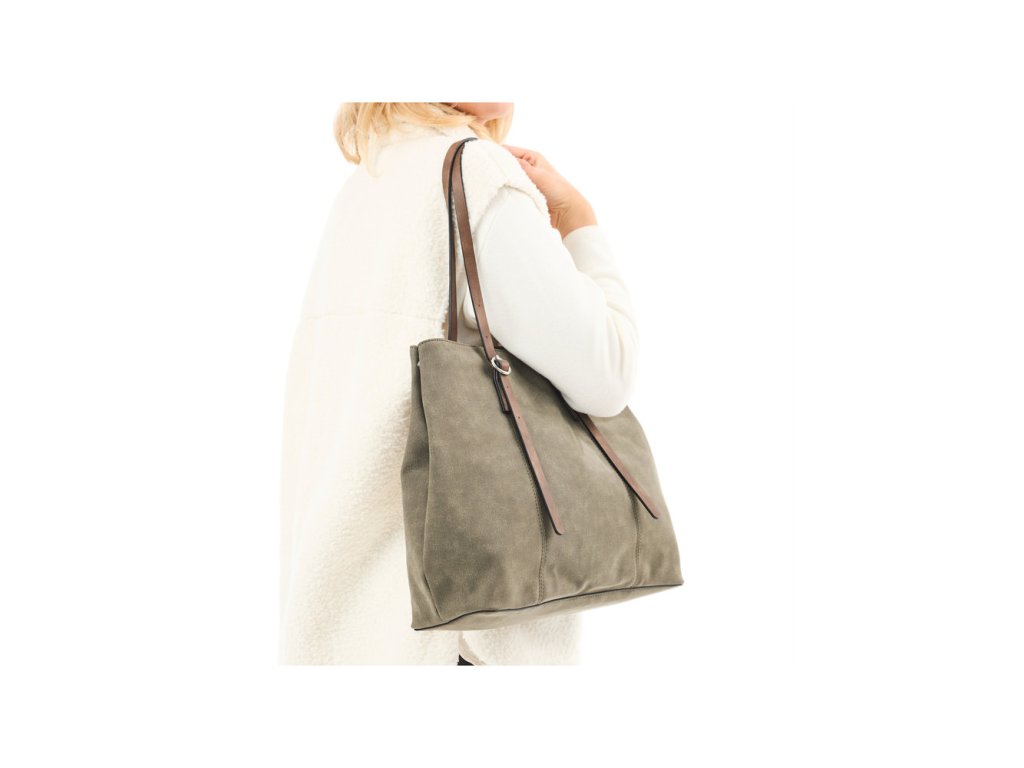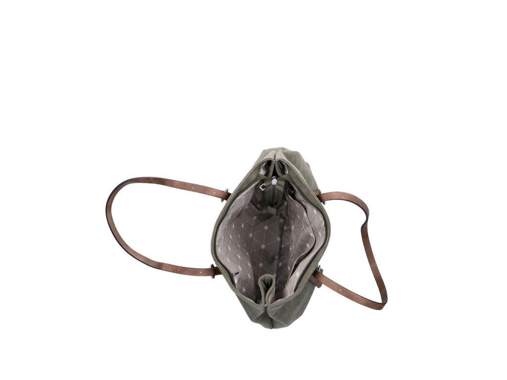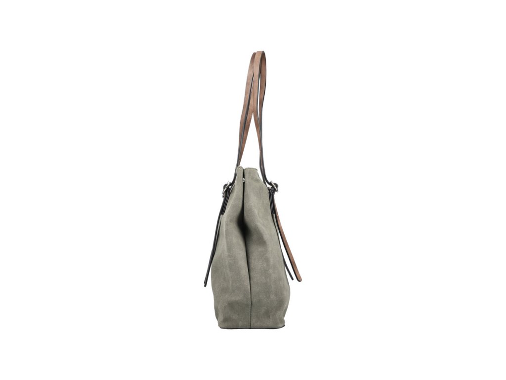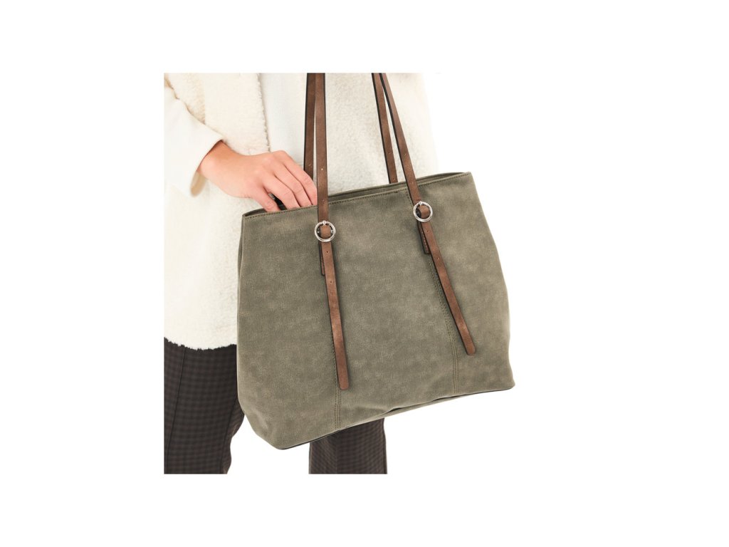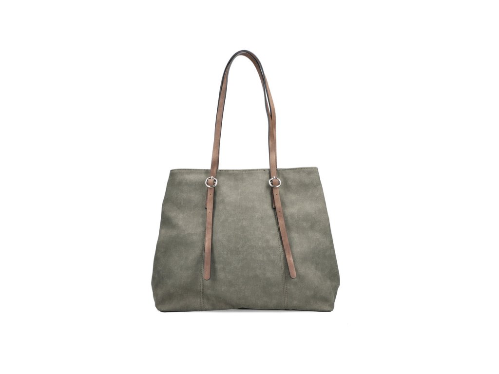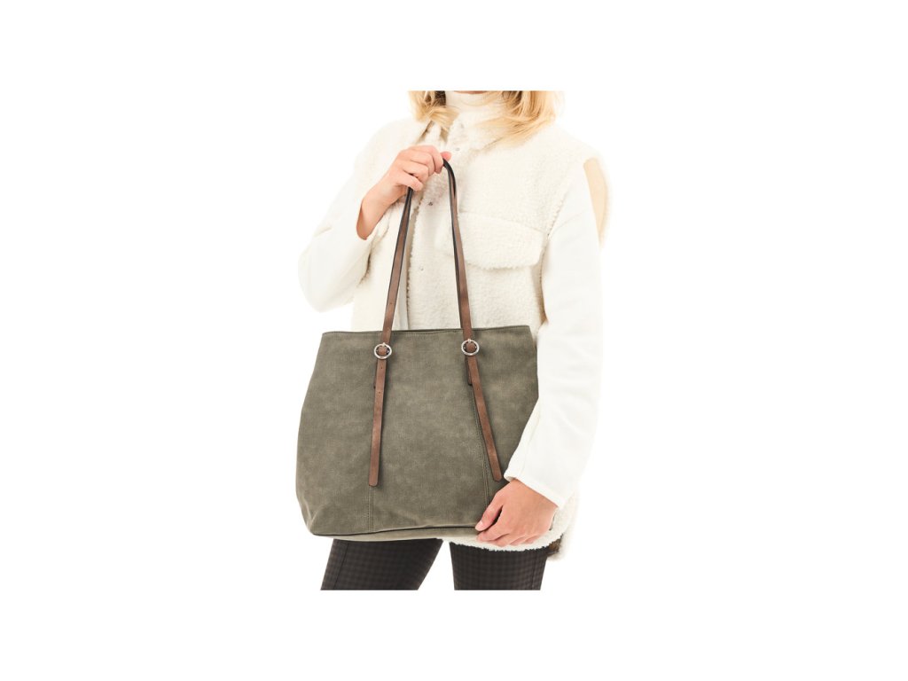 Tato kabelka RIEKER v šedo zeleném provedení je skvělou volbou pro milovnice vkusných a praktických doplňků. Svršek v decentní barvě doplňují kontrastní hnědé popruhy, které dodávají celému modelu módní kontrast a nastavitelnými sponami si je snadno přizpůsobíte podle svých potřeb. Hlavní prostor je uzavíratelný zipem a uvnitř naleznete menší přihrádky. Kabelka je ideálním doplňkem pro běžné nošení, který snadno sladíte s každodenním outfitem.