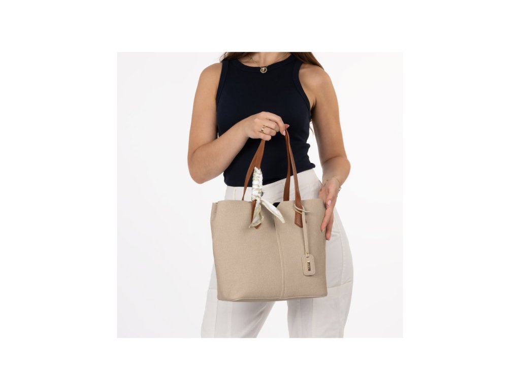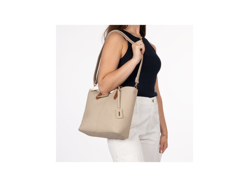 Tato kabelka RIEKER v béžové barvě představuje harmonické spojení nadčasové elegance a praktičnosti. Doplňkem je textilní prvek v designovém zpracování, který zvýrazní půvab kabelky. Praktičnost doplňují dva kratší úchyty a odepínatelný popruh s možností nastavení délky pro pohodlné nošení přes rameno.