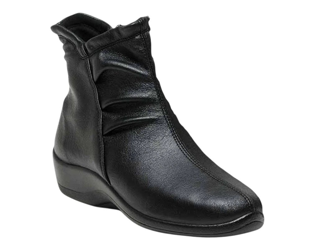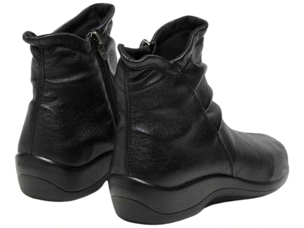 Portugalská obuv Arcopedico. Jejím znakem je anatomická stélka a speciálně vyvinutá podešev s patentovaným podpůrným dvojitým systémem klenby. Obuv je díky tomu ideální pro celodenní nošení. Vrchní materiál Lytech ®, je lehká směs polyuretanu a lycry. Nadčasový vzhled s vkusným nařasením a zipem na vnitřní straně.