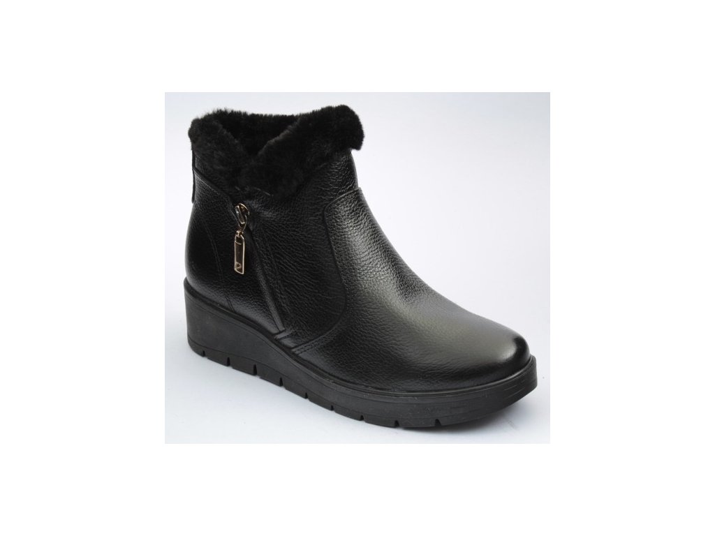 Dámská kotníková obuv Santé je zevnitř opatřena chlupem, díky kterému vám nebude v chladnějších dnech zima. Obuv se zapíná pomocí zipu z vnější strany, díky kterému se Vám budou botky snadno obouvat. Obuv je vhodná na širší nohu.