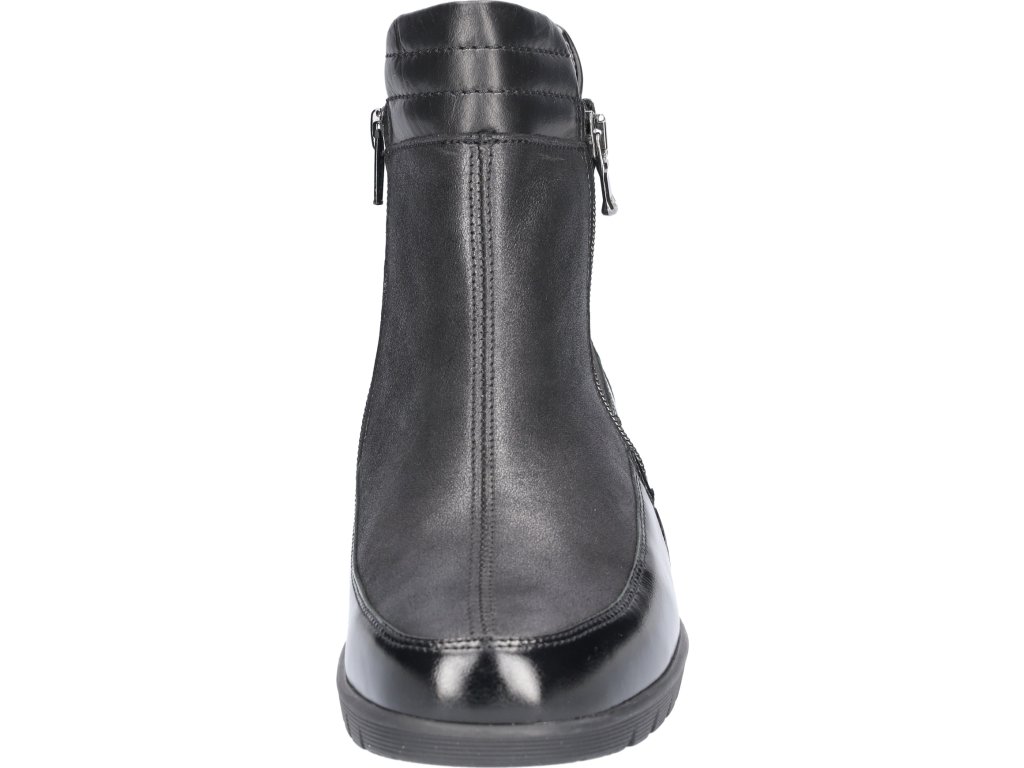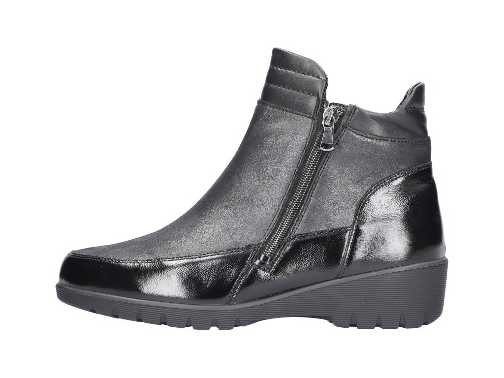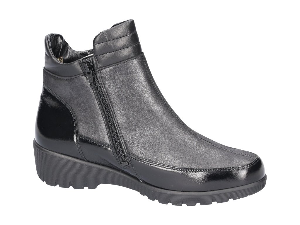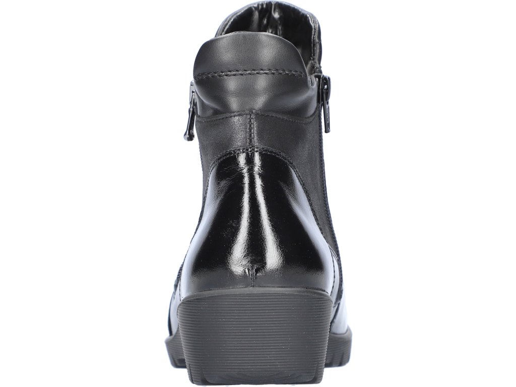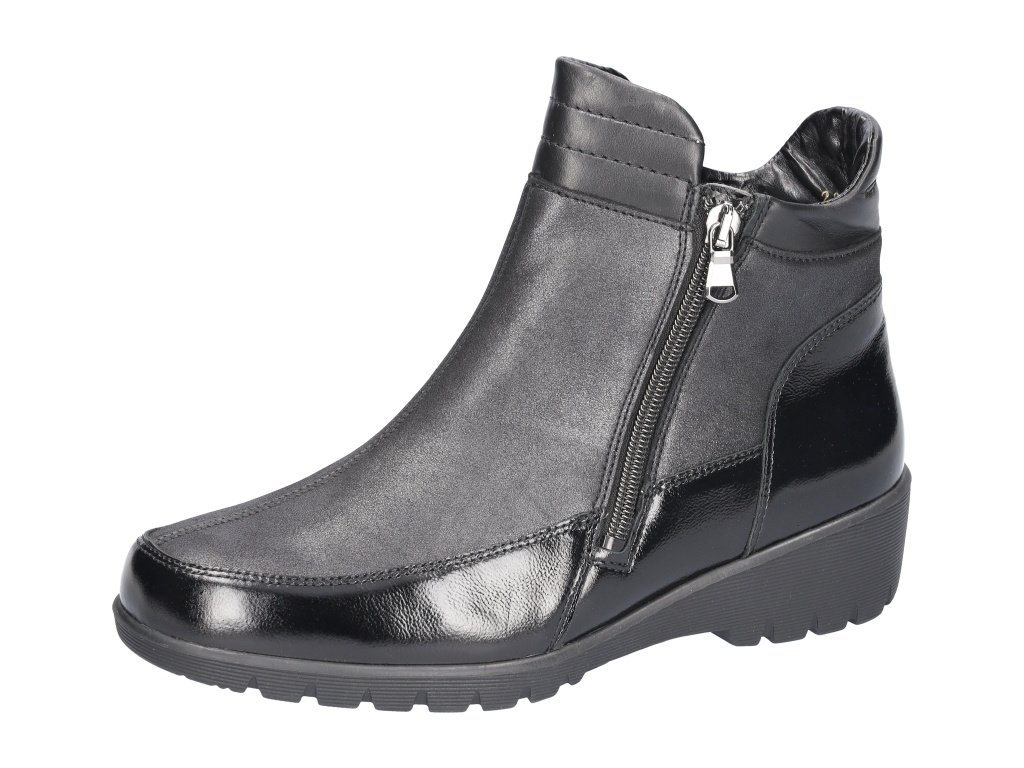 Pohodlné kotníkové boty v šířce K z kolekce Waldläufer. Svrchní materiál v kombinaci měkké lakované a hladké kůže. Obuv je zateplená kožíškem v kombinaci s kůží. Praktické zipy pro rychlé nazouvání a vyzouvání. Díky vyjímatelné stélce se dobře hodí i pro vlastní ortopedické vložky. Pružná gumová podešev s profilem a výškou podpatku 40 mm. Obuv v šíři K je celkově široká i přes kotník.