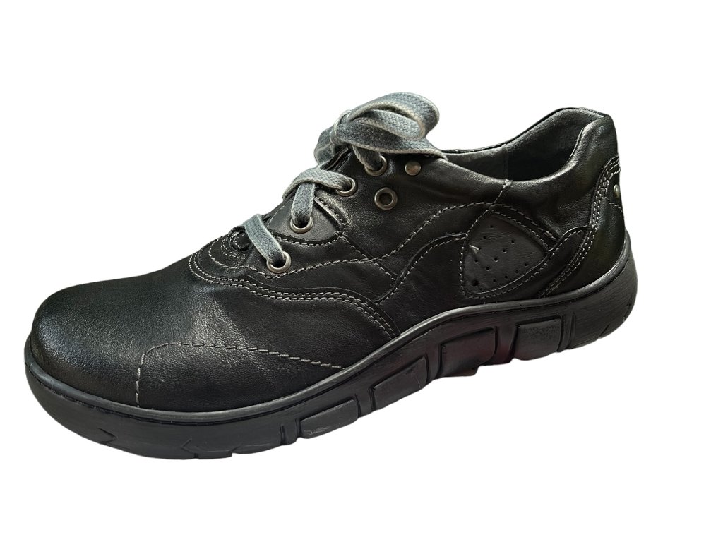 Černé klasické polobotky od oblíbené značky KACPER z hladké kůže jsou velice pohodlné a komfortní. Šněrování na nártu umožní pohodlné nazouvání a zaručí, že obuv KACPER bude dobře "sedět" na noze. Pohodlná, měkká kožená stélka zaručí vysoký komfort při nošení ve městě i při nenáročných volnočasových aktivitách díky speciální technologii FullControl.