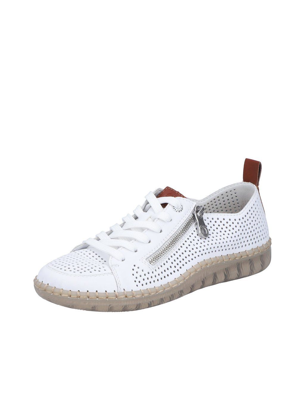 Maximální pohodlí a moderní vzhled – to nabízí tyto nadčasové tenisky Rieker. Svršek obuvi je perforován a doplněn o hnědé detaily, funkční zip a šněrování. Měkká vyjímatelná stélka poskytuje pohodlí po celý den a díky širšímu střihu se budete cítit pohodlně na každém kroku. Lehká podešev s technologií tlumení nárazů šetří klouby a zpříjemňuje každý krok.