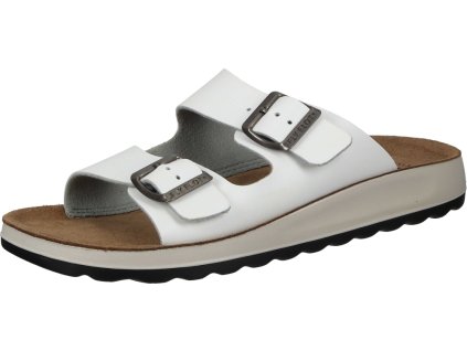 Dámské pohodlné zdravotní pantofle se třemi nastavitelnými pásky na nártu a koženou stélkou s podporou nožní klenby. Obuv je komfortní a pohodlná.