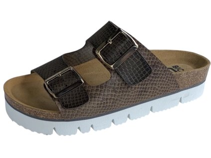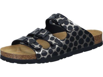Dámské pohodlné zdravotní pantofle na klínu se třemi pásky na nártu. Jeden pásek má nastavitelnou přezku a druhý je ozdobný. Obuv je vybavena koženou stélkou s podporou nožní...