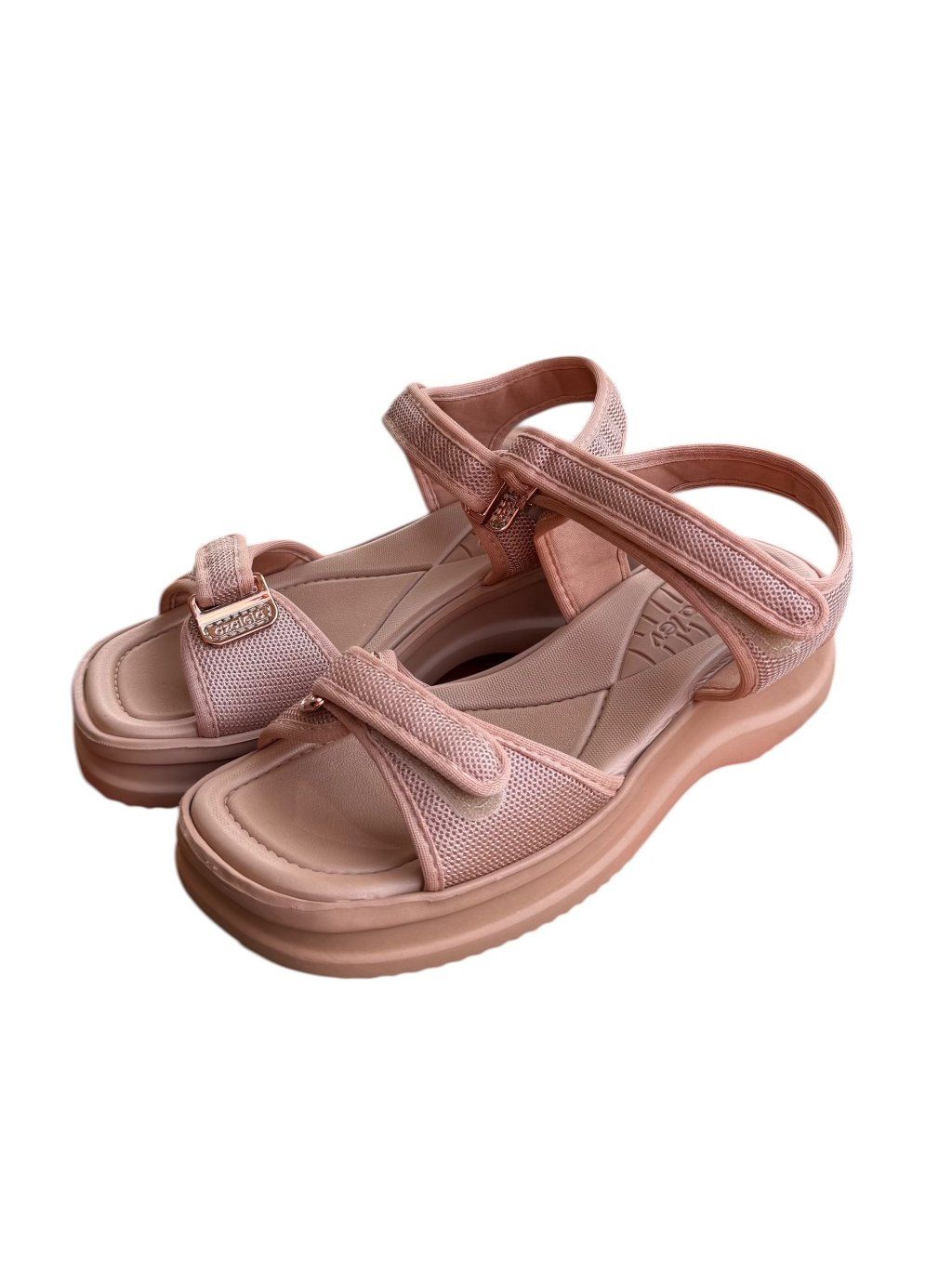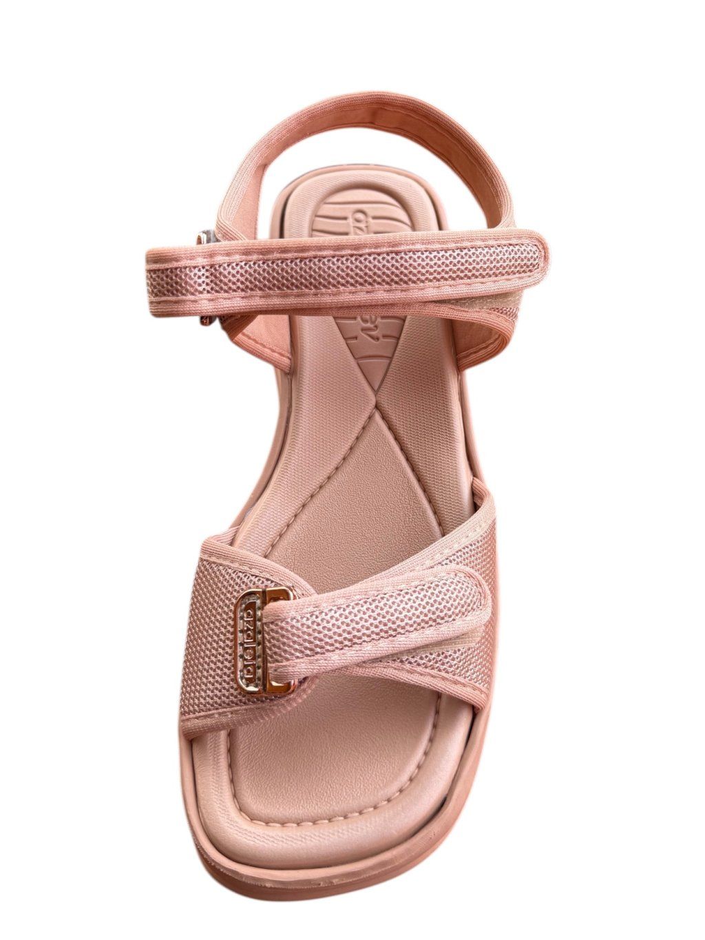 Velmi lehké, oblíbené dámské letní sandály brazilské značky Azaleia. Díky měkčené stélce a textilním páskům jsou velmi pohodlné, ale přesto pevně drží na noze. Šířka pásků lze pomocí suchého zipu lehce upravit jak na nártu, tak kolem kotníku. Snadno se přizpůsobí větším či bolestivým kloubům.