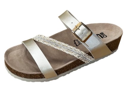 Dámské kožené pantofle na flexibilní platformě. Na nártu tři kožené pásky se sponou pro pevnější usazení na noze.