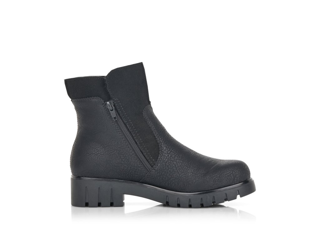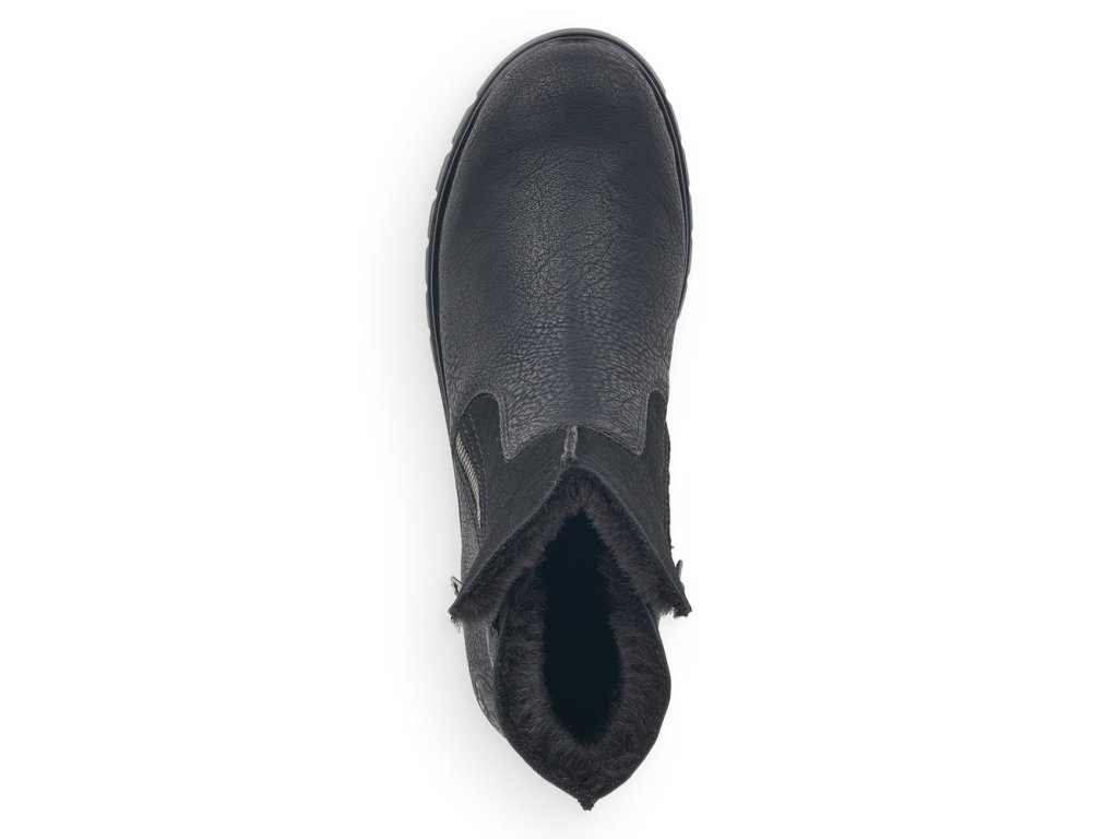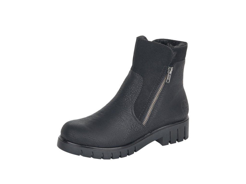 Hladký svršek je zdoben zipem na vnitřní i vnější straně pro snadné obutí výhodou obuvi je teplá podšívka, měkká stélka a kvalitní podešev . Díky membráně RIEKER TEX Vás nepřekvapí ani deštivé počasí.